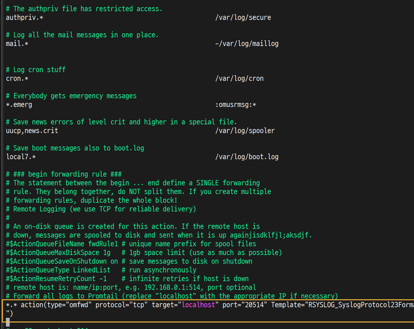 - 20514 포트로 Promtail 과 rsyslog 연결하기로 함.