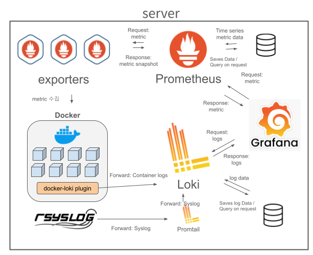 직접 그린 Docker-monitoring 아키텍쳐 구성