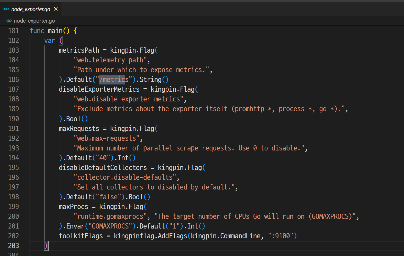 Node exporter 의 코드 전문은 아래에서 확인할 수 있다.