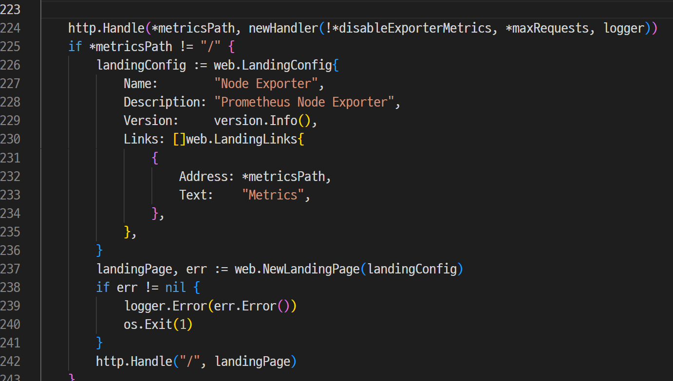 이 결과값들이 http.handler를 거쳐 prometheus로 반환된다.