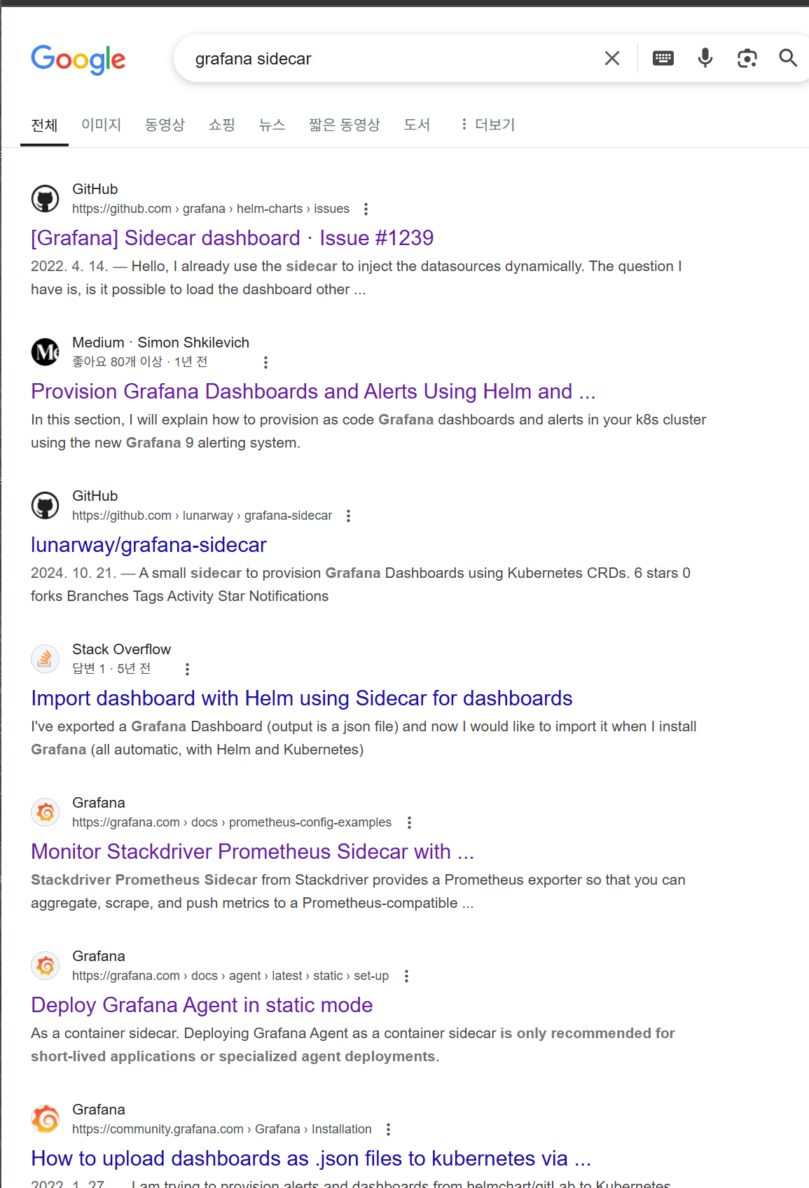 grafana helm chart - values.yaml - sidecar 설명.
