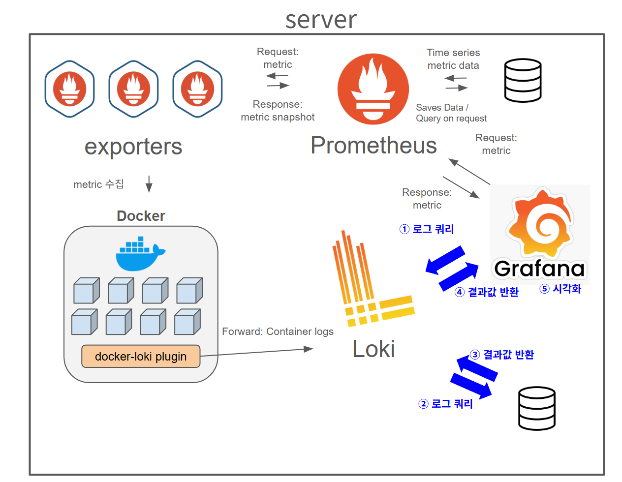 - 참고: Grafana 자체는 metric / log 정보를 저장하지 않음.